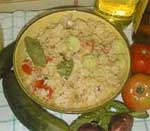Ein einfacher Bohnesalat mit gewürfeltem, mildem, jungem Pecorino Käse. Angemacht mit Öl, Salz und Pfeffer. Dies kann auch ein hervorragendes Hauptgericht sein, vor allem wenn man schon einen gehaltvollen ersten Gang hatte.