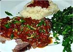 Das gleiche Gericht wie zuvor, aber mit Tomatenpüree. Die Bohnen sind köstlich zu gekochtem Fleisch oder Würsten.
